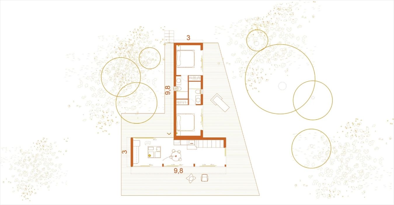 - Techo exterior: Paneles Eco-SIP de 174 mm con aislamiento de poliestireno PPS-20 (EPS).